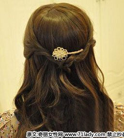 10、最后我们只要别上一个自己喜欢的发饰点修饰就好了,就更加完美了!