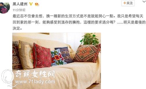 其中“新欢”等字眼似乎很容易让人联系到他的感情状况。这一重磅新闻点燃了网友的八卦热情,于是网友们纷纷留言,猜测这究竟是什么情况。 要知道,黑人建州可是娱乐圈里的“炫妻炫娃狂魔”,和范范可谓模范夫妻。他的微博更是保持超高频次地秀恩爱,频频虐死单身狗。所以黑人这次发微博,让网友们一时炸开了锅,惊呼难道真的是“分手”了?!