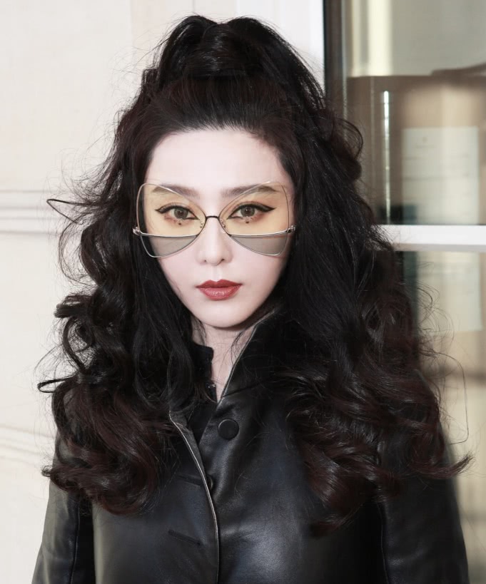 冰冰好像还是出席时装周的那个妆容,发型也保持了大卷,戴着一顶贝雷帽,继续穿一身黑。