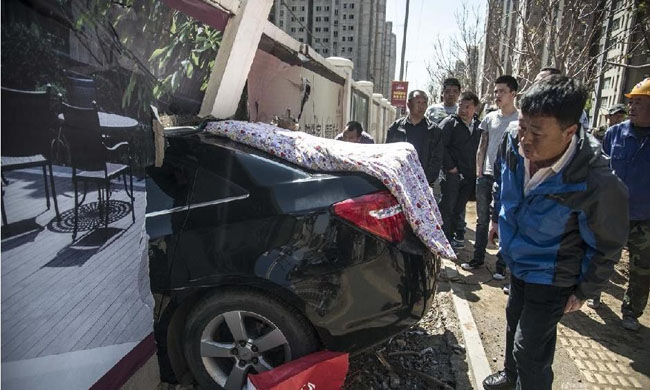 华贸女司机撞墙视频
