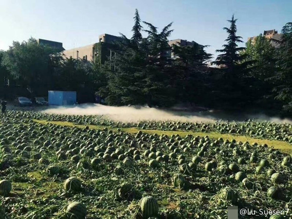据负责人介绍,这些西瓜一共有3500个,是送给毕业生的礼物,为了给人一种一夜冒出来的感觉,他们特意在半夜用两辆大货车运过来,在凌晨半夜铺好,就是给人一种惊喜的感觉。而对于有些人说到的浪费并不是这样,展示结束后这3500个西瓜会送给在场的学生,所以并不用担心浪费问题。不过不得不说,这样的作品真的很有趣充满了夏天的感觉。