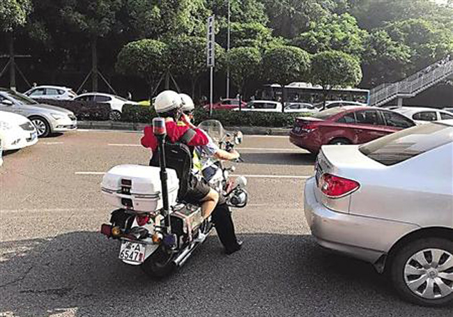 6月7日早8时许,在重庆育才中学2017年全国高考考点,一位老师向警方求助, 她不小心将全班几十位考生的高考准考证遗落在宾馆。重庆九龙坡民警立即驾驶送考警务摩托车送其回宾馆,一路连闯多个红绿灯,逆行穿过早高峰的车流,最终顺利在开考前拿回准考证。“忘带全班准考证 ”也随之登上了热搜。