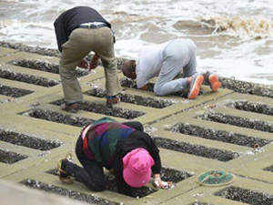 游客冒大风浪抢挖生蚝 连水质污染都阻挡不了他们