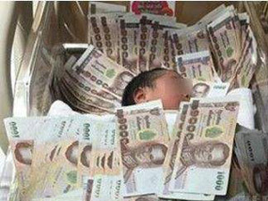 发布时间:2017-03-21一则婴儿盖40万现金睡的新闻引来广大网友的热议。在网上流传一张一个婴儿身上盖满泰铢的图片。据悉,这名婴儿刚刚出生几天,他的一位阿姨就带来200万泰铢的现金铺盖在其身上,这些现金折合人民币40万元。[详细]
