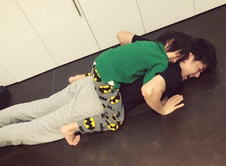 林志颖做俯卧Kimi搞破坏 两帅哥假日亲密玩耍(5)
